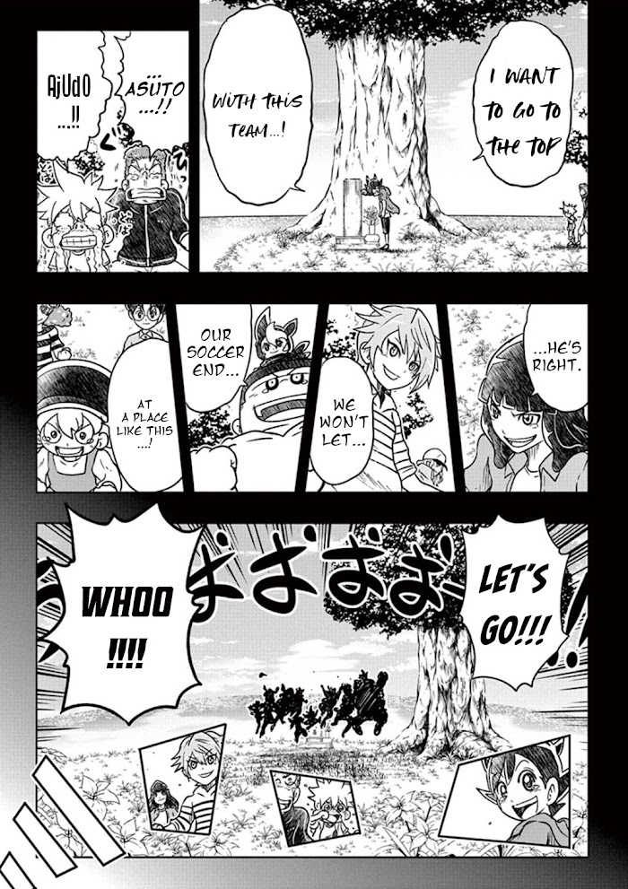 Description : Inazuma Eleven Ares will be set in a parallel world, taking place after the events of the first game, and develop the story from the perspectives of three protagonists—Ryouhei Haizaki, Asuto Inamori, and Yuuma Nosaka.The story revolves around a group of boys living on an island who love to play soccer. Their soccer club is suddenly abolished, and the only way they can regain it is to win the Football Frontier. Protagonist Asuto Inamori and company leave the island for Tokyo to attend Raimon Junior High School and take on the Football Frontier. But their first match is against the number one-ranked Seishou Gakuen.(Source: Gematsu)Note: Includes 2 extra chapters
