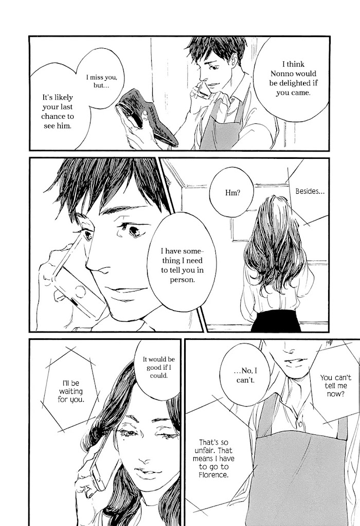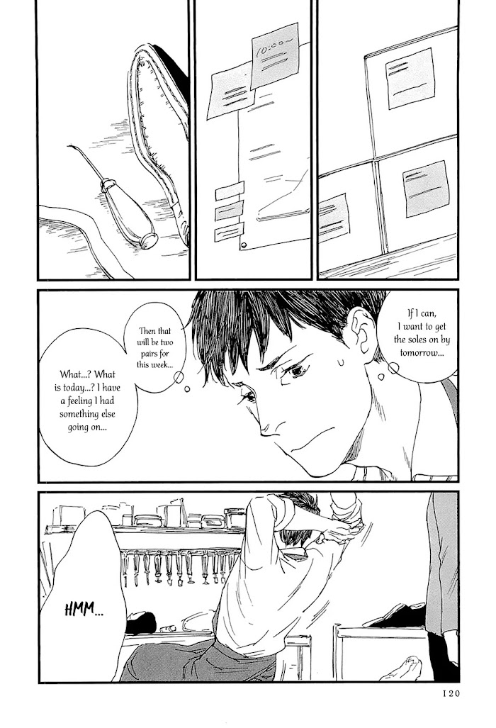 The manga follows a maker of individually crafted shoes after he returns home from a trip to Florence, Italy. One day, a surprise visitor comes to his studio.