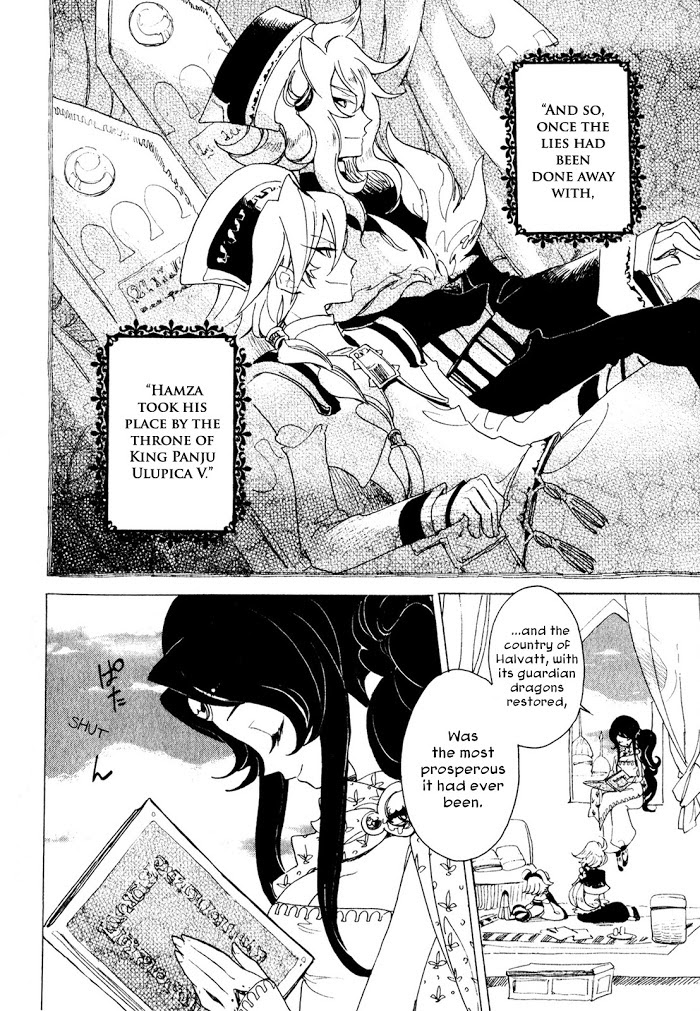 Jauhara Genya: A good looking thief x a handsome prince, where will they get their treasure? Halvard is a country surrounded by sand and blistering winds. In here is Ghee, whose family's occupation is that of a thief. And as long as he is Royalty, for the sake of capturing Ghee, Urupika has been pursuing Ghee. One day, by accident, the two of them fall down into some ancient ruins. Within these ruins is a secret from the founding of a nation. And to search for this treasure, they seize the key to their family's secrets...? The riddle of the treasure hunt is approaching, an Arabian romantic fantasy begins. (Source: Nevermore Scans)