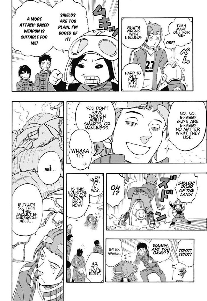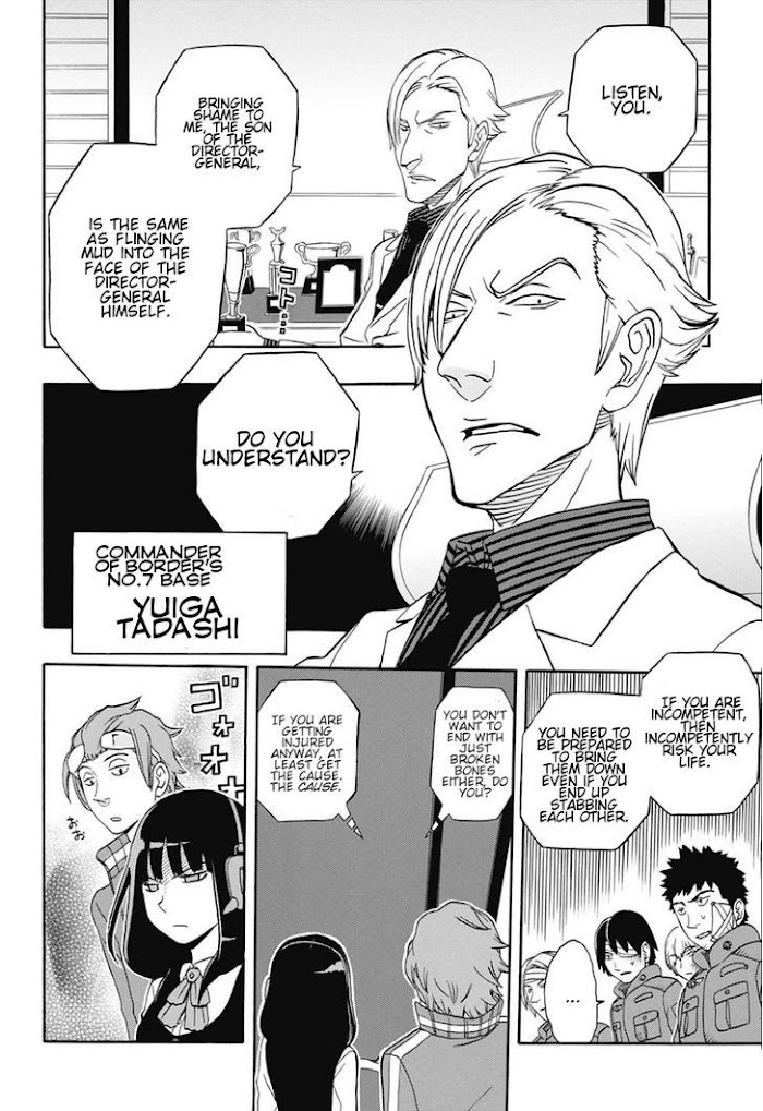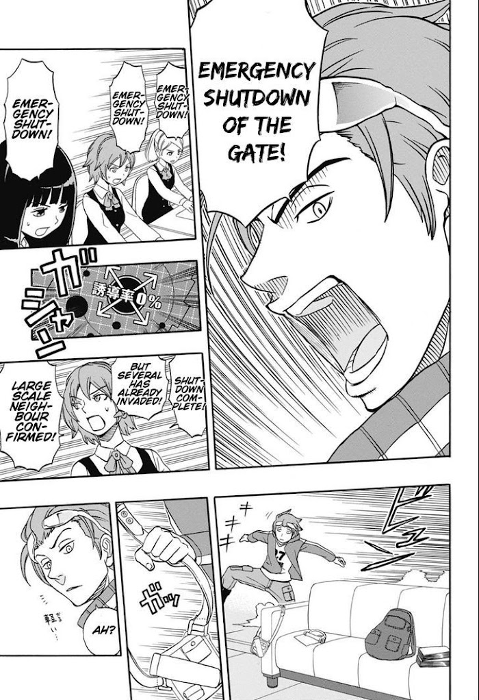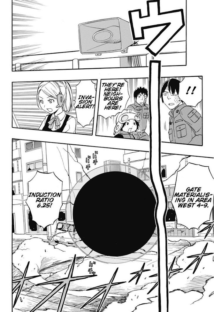 Creatures from another dimension have invaded Earth! Earth weapons are useless against these 'Neighbors,' but some scientists have created new weapons based on the enemy's technology. Using these weapons, humans struggle to defend themselves from the invaders. The head of the central base has sent the ace soldier, Yuuichi Jin, to help out the failing Base 7, and rescue his son Yuiga Tadashi, who is the leader there. Unfortunately, the problem with Base 7 is, in fact, Yuiga Tadashi. He's a terrible leader who cares for nothing but his own reputation and believes that being the central base leader's son allows him to do whatever he wants. Will Jin be able to fix this terrible situation? (Source: MangaHelpers)