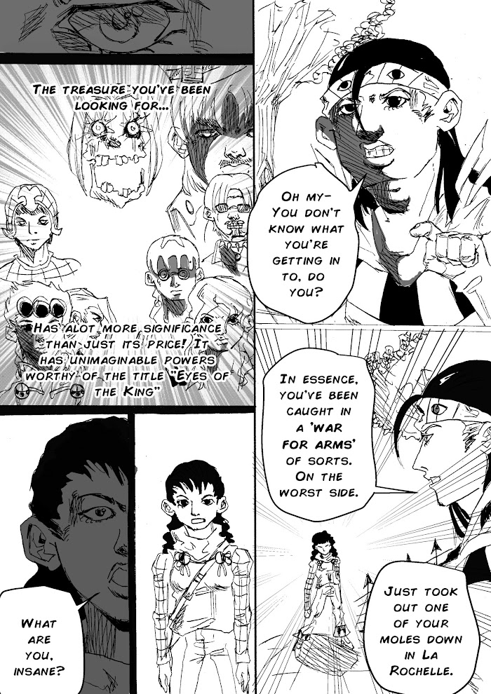 Note: So apparently a mistake came up with the original entry of Pearly Eyes, and when I contacted a mod on discord, they said I'd have to redo the entry. So here it is! I hope the chapters will show up. Plot: Johansen Joestar is a 33 year-old counterfeiter living in Bilbao selling fake treasures and maps to gullible tourists. One day, after having retrieved his only genuine treasure map from a mysterious theif, Johansen is approached by a real treasure hunter who recognizes him from his adventurous "exploits" and gets dragged into an expedition with them in search of a legendary pirate's treasure. Could this be his big break in life? Meanwhile, two dangerous criminal syndicates are fighting for this very same treasure in the background.