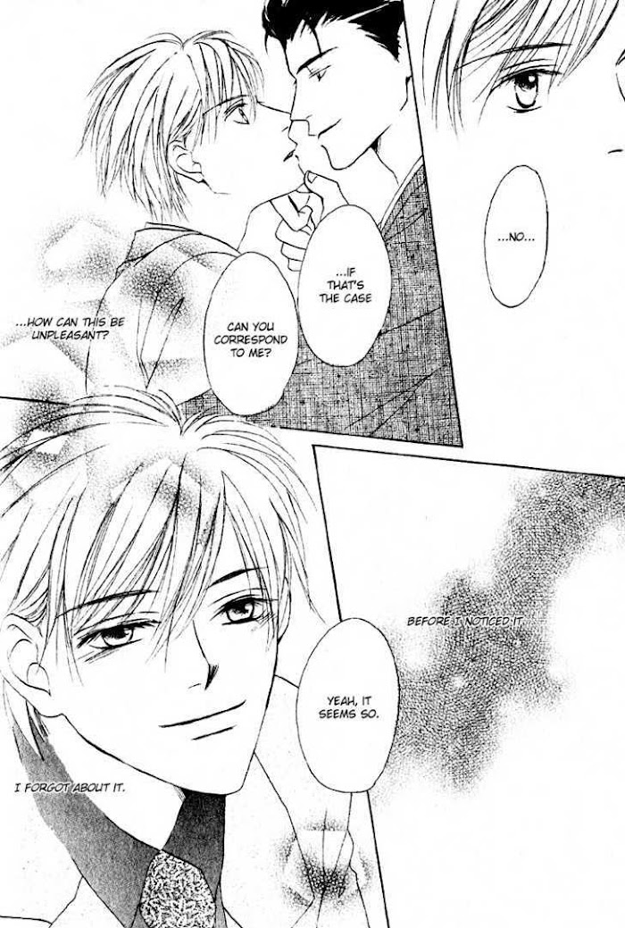 Karou, the male twin to the female super-model, Tsubaki, hates his face for its feminine beauty. Disgusted by the men drawn to him by his similarity to his sister, he has grown to hate any kind of contact with men. Then why is he conflicted by the attentions of Shino, the president company giving financial backing to Tsubaki's cosmetic firm? Isn't Shino just like all the other men seeking a substitute for Tsubaki? (Source: MU)