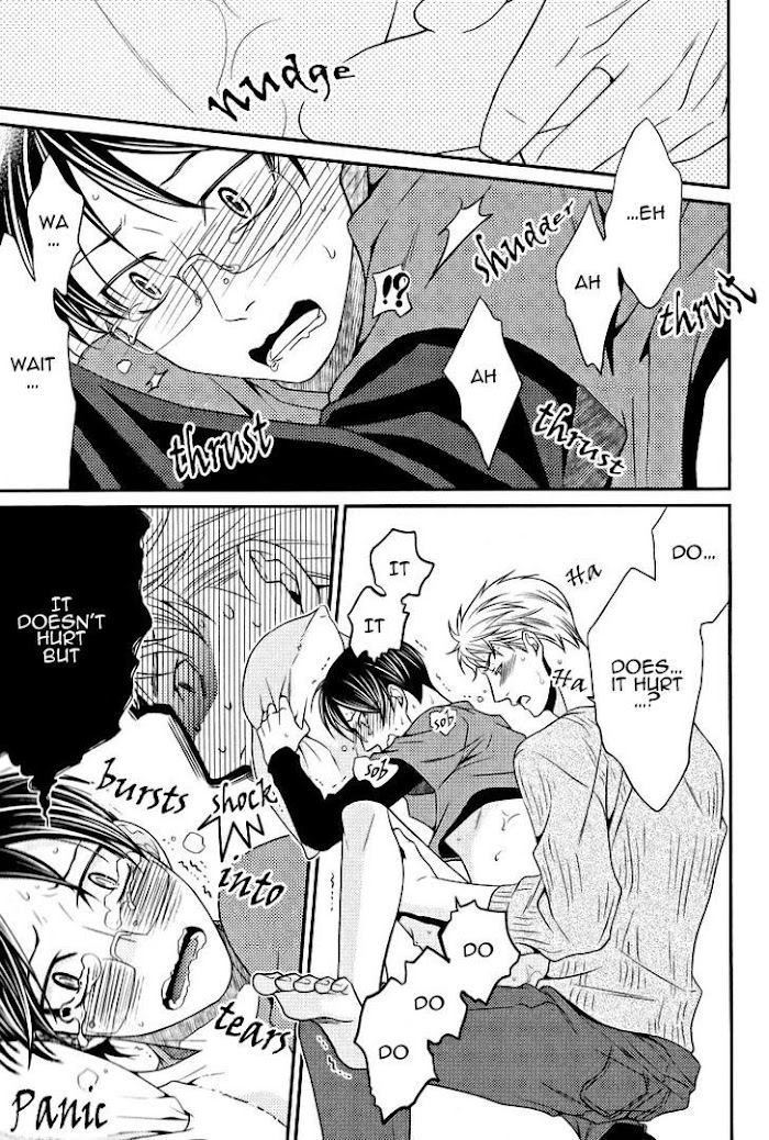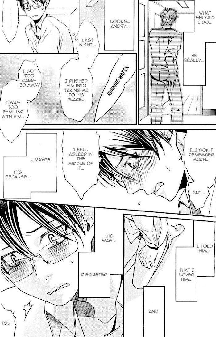 Socially awkward Aono was perfectly happy working in Quality Control as but fate would have it he's been transferred to the Sales Department?? As if being ridiculed by his co-workers for his nervous stutter isn't bad enough, he's thoroughly mortified when the departmental star Gouzaka overhears him having a breakdown on the roof. But no matter how often he pushes Gouzaka away or how fast Aono runs Gouzaka is always there by his side... (Source: MU)