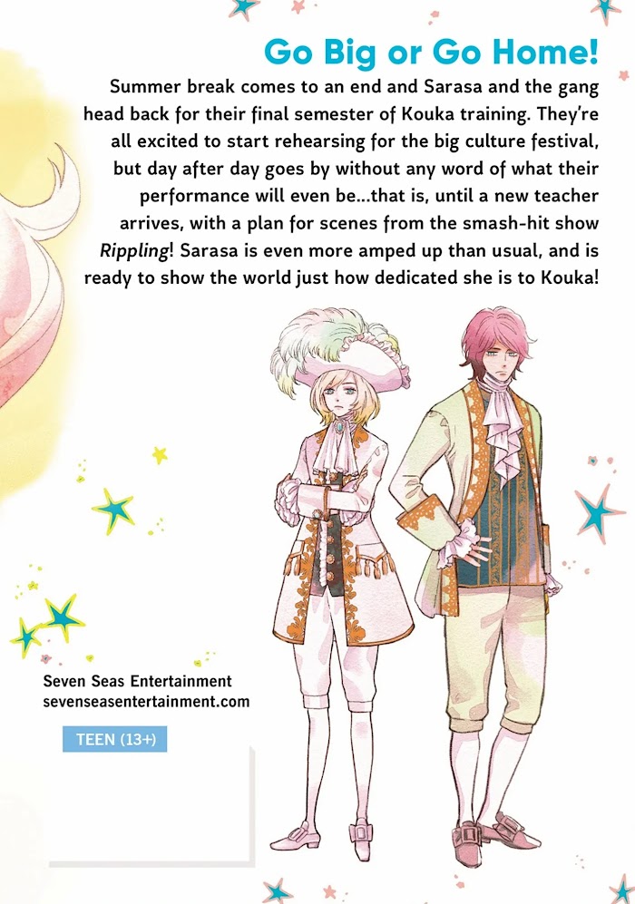 The critically acclaimed shoujo manga about the drama of all-women musical theaternow an anime!Like the Takarazuka Revue, the young women who go to the Kouka School of Musical and Theatrical Arts play all the parts of musical theater, be they female or male. Narata Ai is a jaded former idol performing female rolesher roommate, playing male roles, is bright-eyed musical fangirl Watanabe Sarasa. From the school to the stage to the rest of their lives, there is no challenge these young women can't face with their passion for performance.