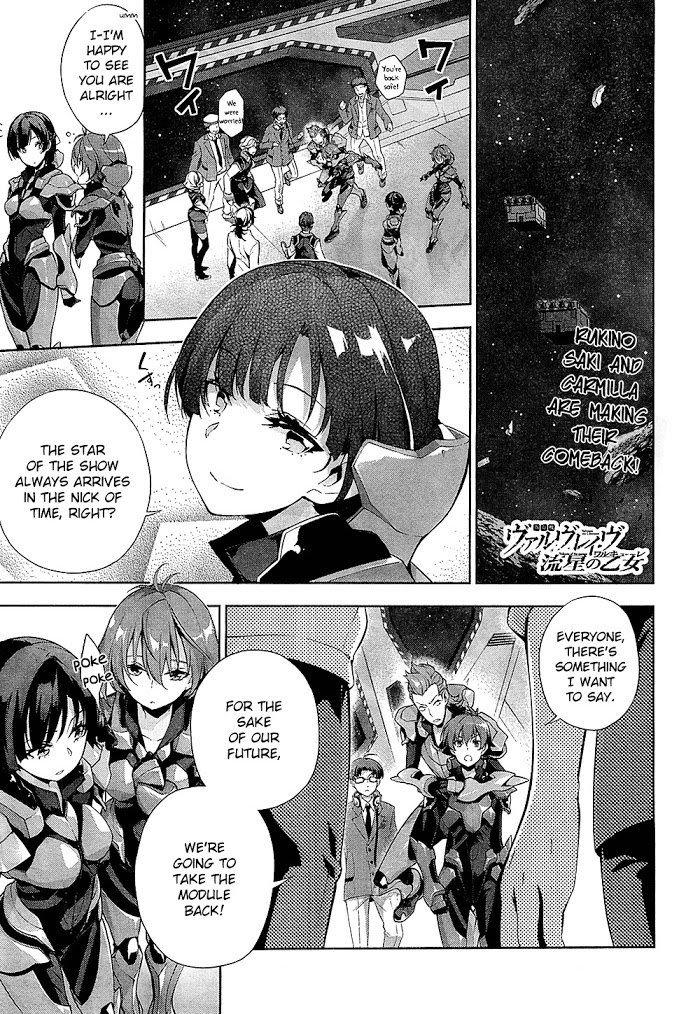 Kakumeiki Valvrave - Ryuusei no Valkyrie manga summary: A side-story of Kakumeiki Valvrave centered on the school idol Saki Rukino, telling her story from both past and present points of view.> Spin-off of Kakumeiki Valvrave( http://mangapark.com/search?q=kakumeiki-valvrave )