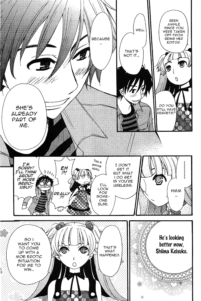 Yearning for of the world of erotic novels, Shiina Keisuke triumphantly joins the business as an editor. The author he yearns to work with is Kuroki Chihiro, however everyone is afraid of her because she is a devil to work for. (Source: MU)