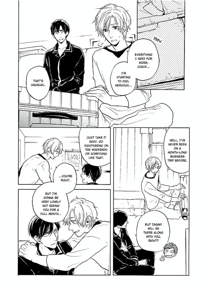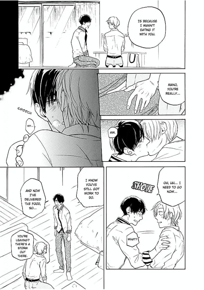Everyone at the office is a little afraid of the boss, Mr. Mano, probably because he's always scowling and rarely talks. When Akane hits a rough patch and has little choice but to crash at Mr. Mano's place for a while, he spends his days on edge, painfully aware that he's an unwelcome guest... Until one day, in a strange turn of events, Akane finds out Mr. Mano's "dark secret" and can't help but feel a sharp twinge of affection. The guy's got a scary face, but then he'll get all bashful and turn pink, or let out a shy little laugh, or... Hang on, this is just way too cute!! A super lovey-dovey romcom chock full of books that don't match their covers, starring a do-gooder businessman and his grumpy-faced boss.