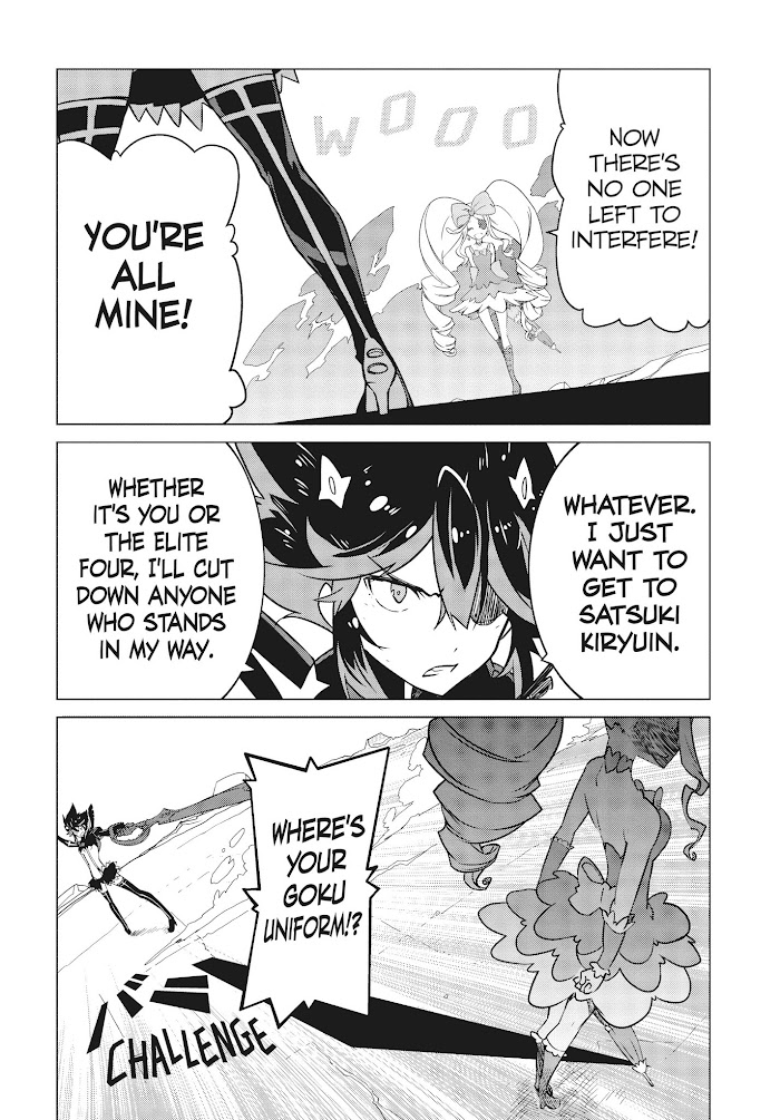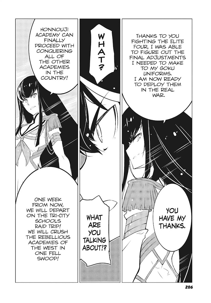 The story centers around two fiercely fighting schoolgirls, Ryuuko Matoi and Satsuki Kiryuuin. On a campus ruled by force, a transfer student wielding a Basami sword brings about upheaval. (Source: ANN)