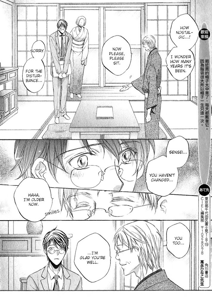 After a fairly futile attempt at capturing the heart of Jinnai, Kijima finds himself dealt with a lucky hand once again. One day, dazzled by the pattern of a beautiful kimono, he suddenly finds himself enchanted by the talent behind its simple genius. Just how far will he go for such a lovely masterpiece? (Source: MU)