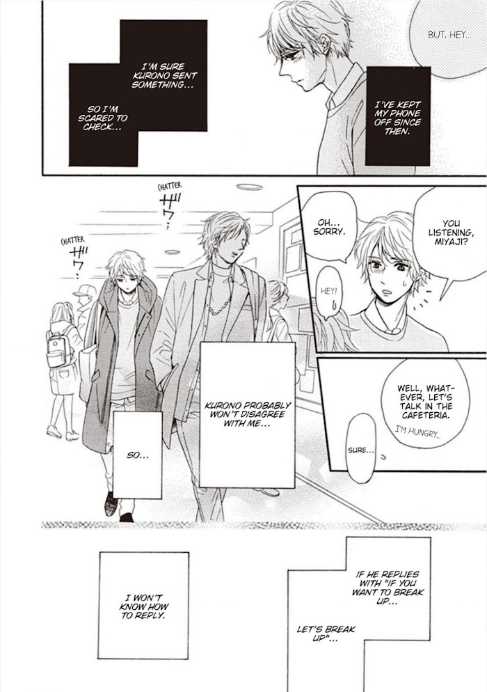 Miyaji’s recent breakup with his girlfriend of three months leads him crying to his best friend, Tomoki, who has been his friend since high school and is a doujinshi artist who likes Momo-tan. Miyaji complains to Tomoki that every girl he has broken up with has the same reason: that Miyaji was bored and didn’t love them. Miyaji begs to differ, and Tomoki agrees that Miyaji is perfect the way he is, which gives the latter feelings he was sure a friend shouldn’t have. As Miyaji figures out what he feels for Tomoki, a drunken night and a heated kiss change everything between the two friends. Will Miyaji be able to come to terms with his newfound feelings?
