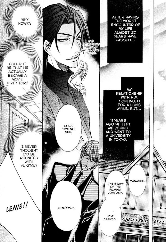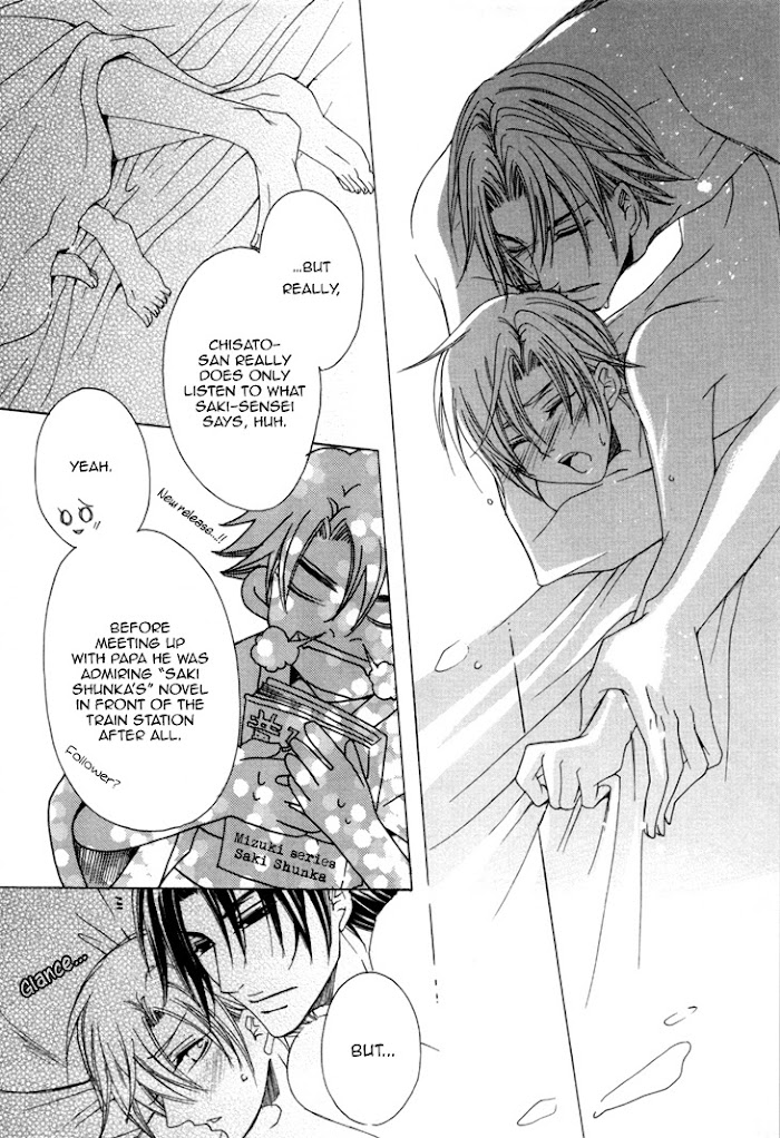 Chisato is a beautiful 35 year old writer (who looks like he's really 18), and father of Riju, a cute 15 year old boy. Chisato's hobby is to drive away all of Riju's friends because he thinks they want to corrupt his precious child. So he shows his good side to these boys while he poisons the cake he brings them with a smile. However, there is one guy, Shunsuke, who doesn't fall for the tricks. But is Shunsuke really aiming for Riju? Who is that mysterious writer Chisato loves so much? And why is Chisato convinced that Riju's friends want to take advantage of him? (Source: MU) The story "Kireani" was published in the third volume.