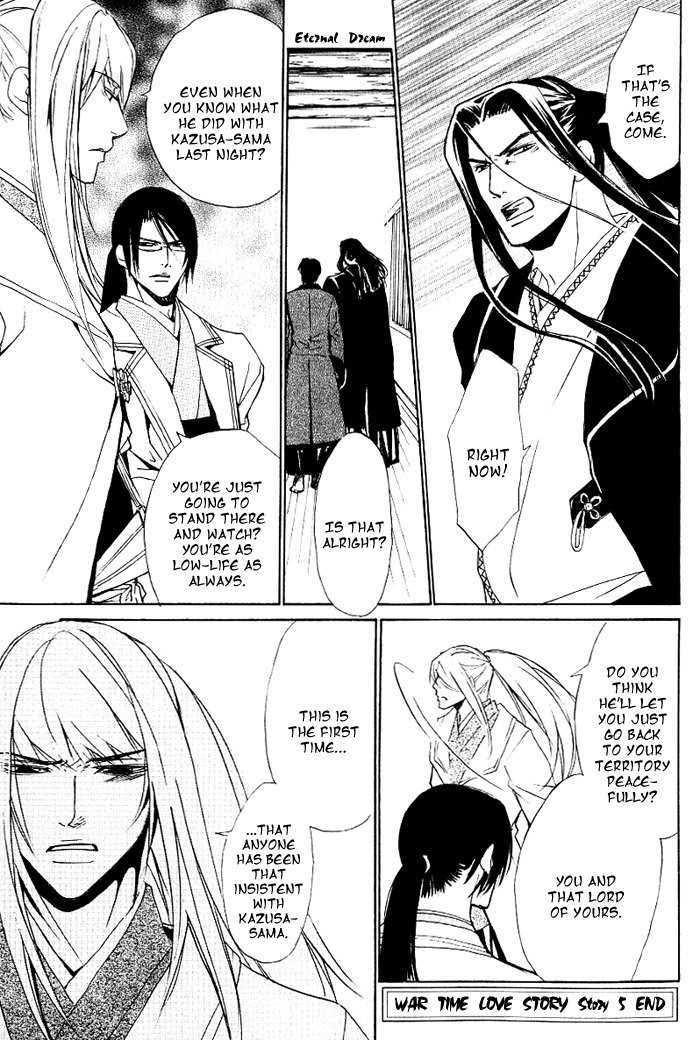 When Senjou Taki was harshly raped by the neighboring territory's feudal lord, Kazusa Toma, all he could only think of was his loyal servant, Somei Chikage. (Source: MU)