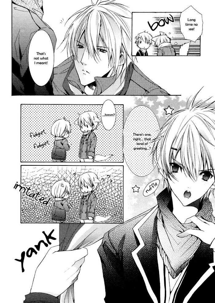 Chikanari's kouhai, Kamo, is head over heels in love with him, to the point where Kamo does everything in his power to be "together" with Chikanari - including changing his hair to have the same style and color, and even getting hurt in the same places. Chikanari's view of love is completely different, so how will these two continue their relationship despite all the odds? (Source: inmeliora) Included one-shot: Amai Koi ni wa Kimi no Uso