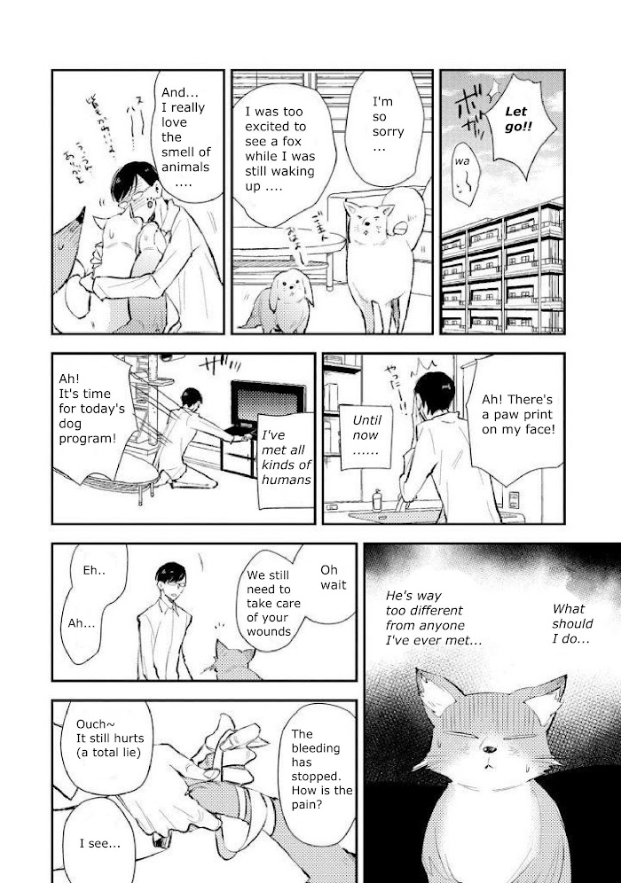 A cunning fox named Gin was picked up by a human named Ase out of worry and his love for animals. When this man fell for his tricks, he decided that he will be his target for now and asked him to be his lover. Ase is not only shocked to learn than the fox can talk and transforms into a person, but he's also worried since he's very bad at communicating with people and uncomfortable around them. Will he be able to deal with the drastic change of his peaceful life with his pets and will Gin be able to seduce this man?
