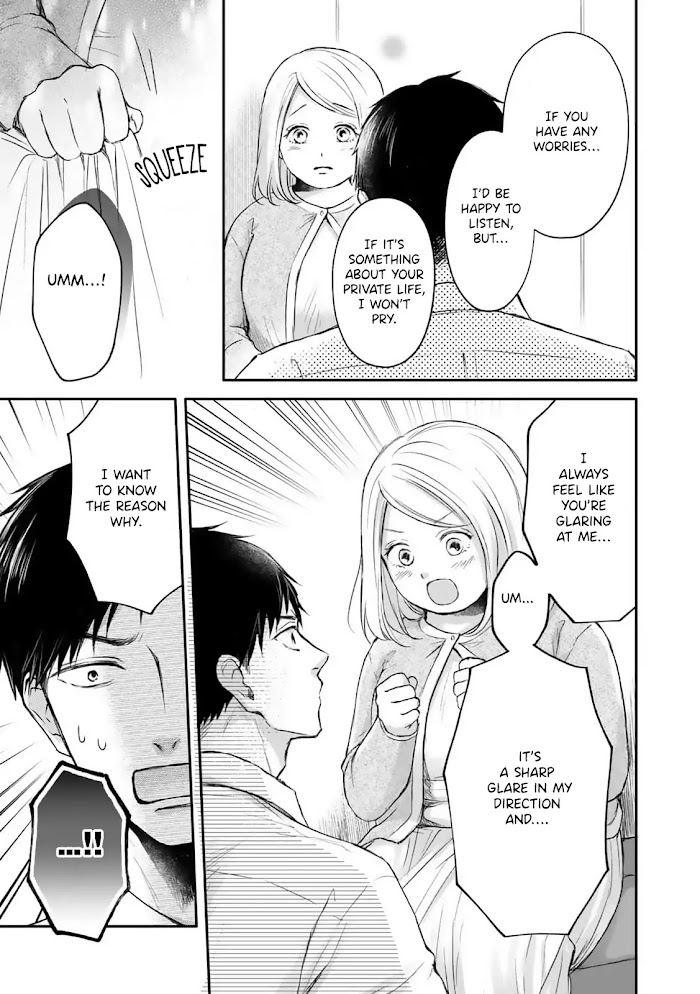On her first day after transferring to her dream department, Enomoto Sana, who has a complex about being chubby, finds herself being glared at by the intimidating Section Chief Kusakabe. One day, Sana slips on the stairs, but the Section Chief picks her up and helps her up. She's hesitant when the Section Chief tries to support her, but he simply gives her another sharp glare... After that, the section chief even goes so far as to treat her injury and when Enomoto boldly asks him why he glares at her... it turns out his usual glare is just him hiding his embarrassment!? Wow, he... likes her...!? And then the Section Chief asks her out on a date...? An innocent and cute love story between a scary Section Chief and a chubby girl!