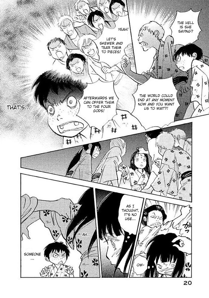 Description : "In this village, death inevitably takes those who have reached 50 years of age." By custom, all villagers who have passed the age of 50 are bound and taken to The Netherworld on the other side of the mountain. Officials clad in beast skins manage the village, "The Living World," whose people are watched over by gods. Meanwhile, the People of the Mountain remain shrouded mystery... Anzu, who sacrificed the older of twin girls to the mountain, is torn between hope and despair. Land, a story that reflects Yamashita Kazumi's unease for the nation of Japan.