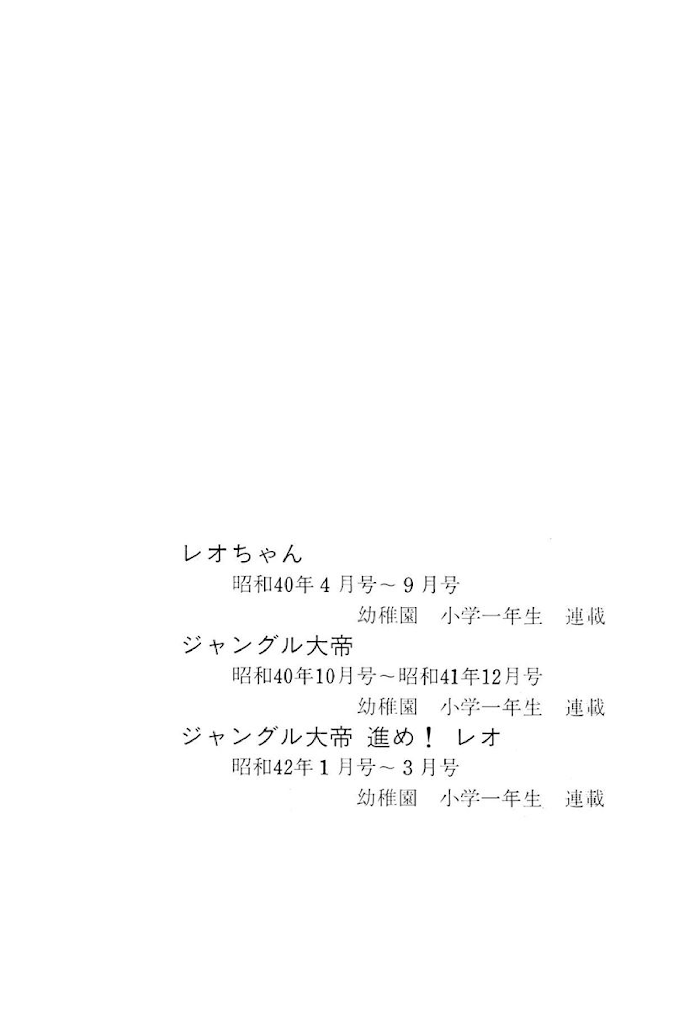 Description : An alternate retelling of Jungle Emperor, where Leo is sent to live with foster human parents in Japan by his parents.---**Volume 277 of the Osamu Tezuka Complete Works**