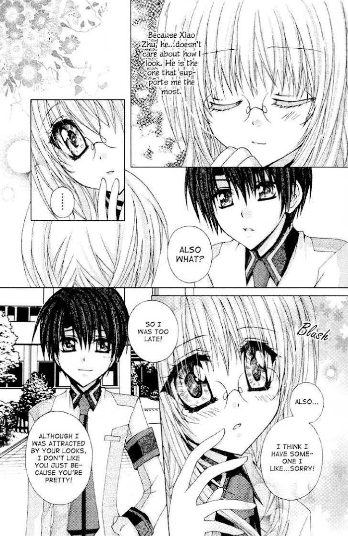 Xiao Mei is a normal high school girl whose hobbies are reading and drawing manga. To encourage her because of her failed love confession, Xiao Zhu gave her a makeover. However, after the photography club's president took pictures of her and published them in the school magazine 'CLOVER', she becomes the 'MYSTERY BEAUTY' the whole school's looking for! (Source: Fate Scanlations) Included one-shot: 4x4 Prince's Diary