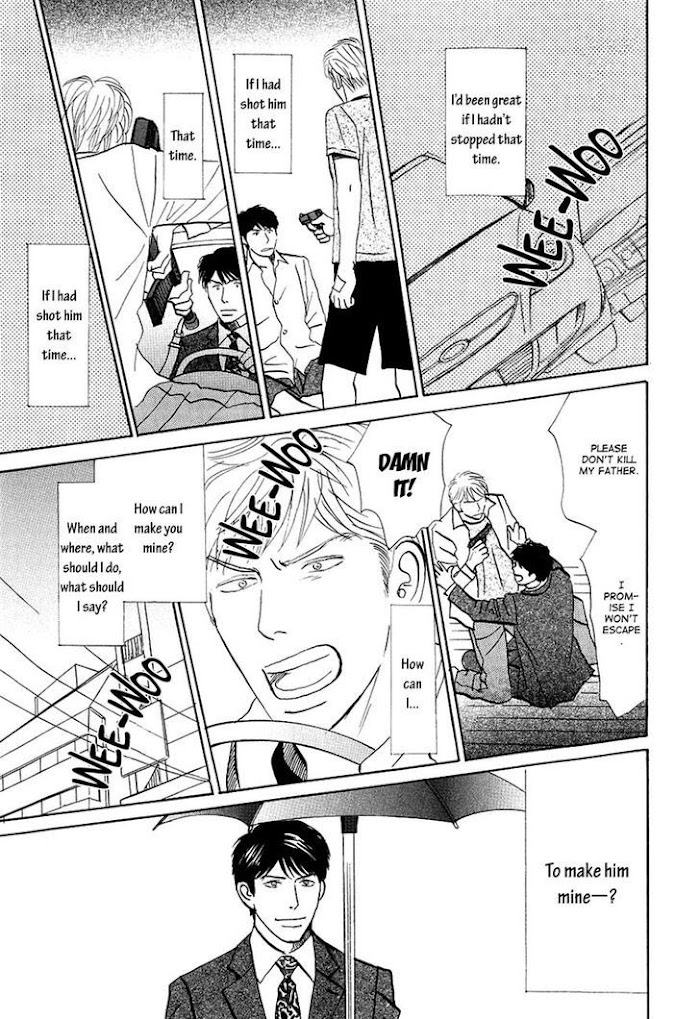 Takahiro is the adopted son and secretary of an important Japanese politician. Already uneasy about his position in the eyes of his disapproving father, it doesn't help when Takahiro gets himself kidnapped by American gangsters. While his captors wait for the ransom demand to be met, Takahiro has to while away the days under the watchful eyes of his assigned guard, Jack. As the days turn into weeks, something like friendship develops between them. But will it lead to more...? (Source: Liquid Passion)