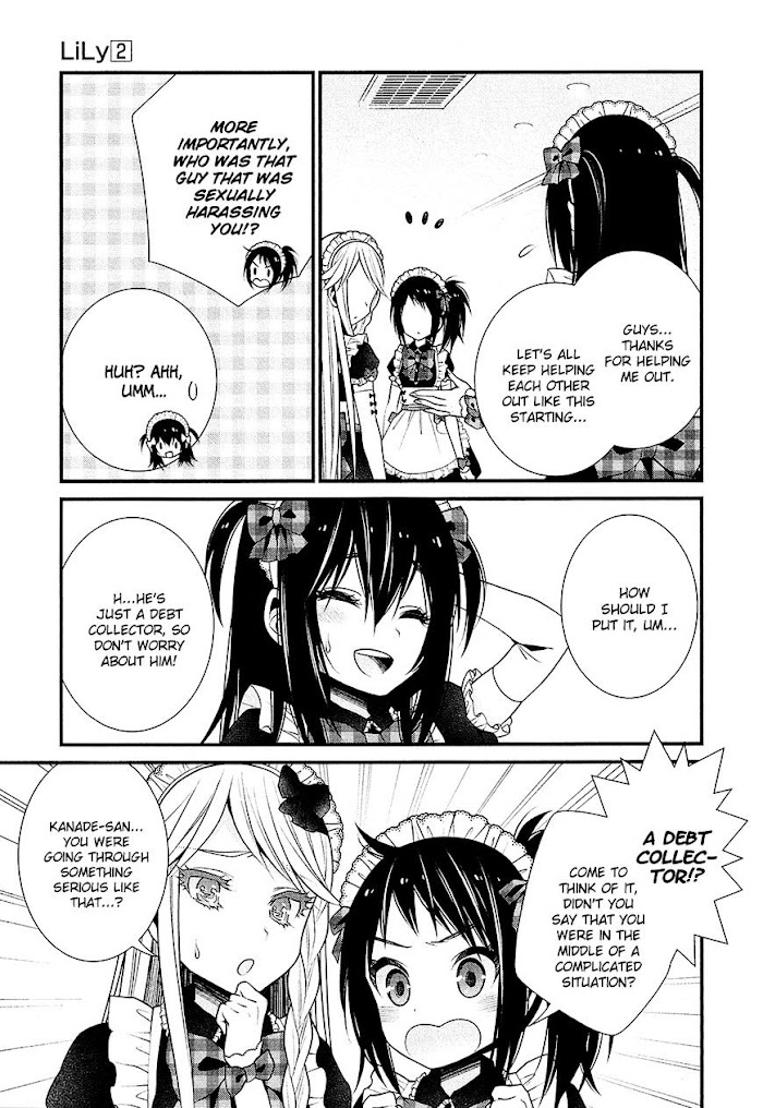 LiLy (EBISAWA Mayo) manga summary: Sou Kagura is enjoying his life as a new high school student until one day when his parents abandon him due to a large debt they had amassed. To get rid of their debt, they essentially sell him to Mikoto Ouzuki, a wealthy land developer who wants Sou as his sexual pet. However, Sou's older sister Ui intervenes with a proposal: If Sou can pay back the debt in one year, he's off the hook, to which Ouzuki agrees. What Sou only finds out later on is that Ui's plan is to open up a maid cafe with him as one of the maids under the name "Kanade".