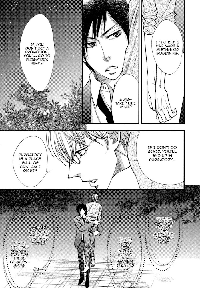 A narcissistic apprentice devil suddenly appears before a lonely shut-in? In order to pass his final exam, Tougo Nishizaki, an apprentice devil, makes a contract with the shut-in college student Sugishita Masato. He'll grant three of Masato's wishes in exchange for his chastity and life energy. Another apprentice devil, Yoichi Murase, has a contract with Nishiima. His arrival brings the lives of these four together in a story you can't take your eyes off of! (Source: Fujoshi Bitches)