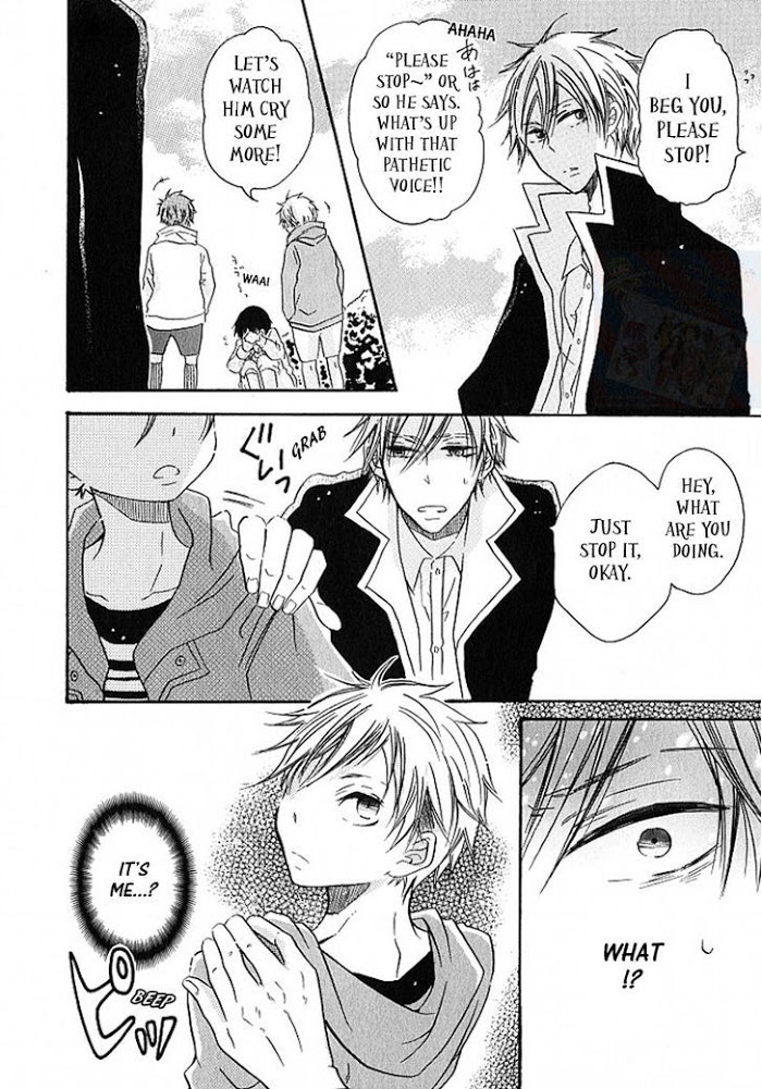 When Aizawa was little he used to enjoy being a bully and picking on Hidaka. Due to the bullying, Hidaka moved away. And once Aizawa went to high school he made a vow to himself to never bully anyone. Oh, no! Who is this new transfer student?! It's Hidaka! Hidaka hasn't or shall I say, can't forget Aizawa. Hidaka has been looking forward to this reunion for years. Hidaka asks to meet Aizawa after school and the first thing he asks is for Aizawa to bully him like he did in the past?! (Source: LuffyNoTomo)