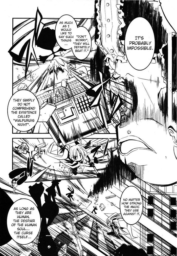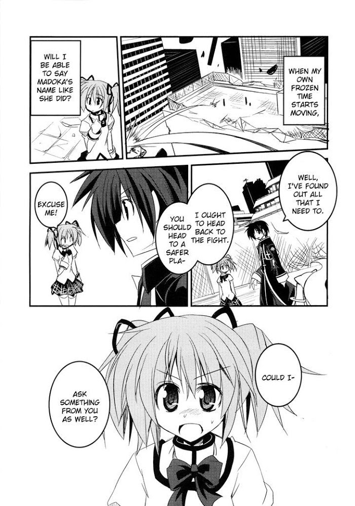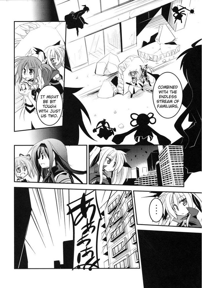 Madoka x Nanoha manga summary: From HimaHimaSeijin Scans: Two of the most badass groups of magical girls join forces to defeat Walpurgis Night with the power of friendship! And planet-destroying lasers.