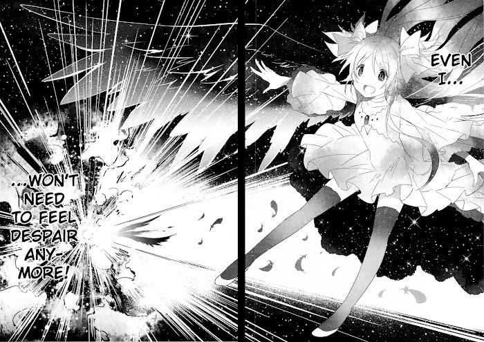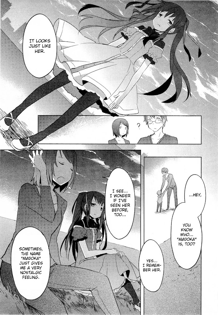 Fourteen-year-old Madoka Kaname has a surreal dream about a strange creature and a girl in trouble. The next morning, a mysterious girl named Homura Akemi transfers into Madoka's class; to her surprise, Homura appears to be the exact same girl that she saw in her dream. Later that day, Madoka hears a plea for help in her head. It turns out that the cries belong to an injured Kyuubey, the cat-like creature who was also in her dream. But she finds Homura at Kyuubey's location, who warns Madoka to get away from the small entity. Making the connection that her new classmate attacked the helpless creature, Madoka takes Kyuubey and runs away with the help of best friend Sayaka Miki. After their escape, Kyuubey offers the girls an enticing opportunity: become a magical girl in exchange for having any wish granted. However, not everything is as it seems, as the weight of their wishes may be a lot heavier than they might have expected. [Written by MAL Rewrite]