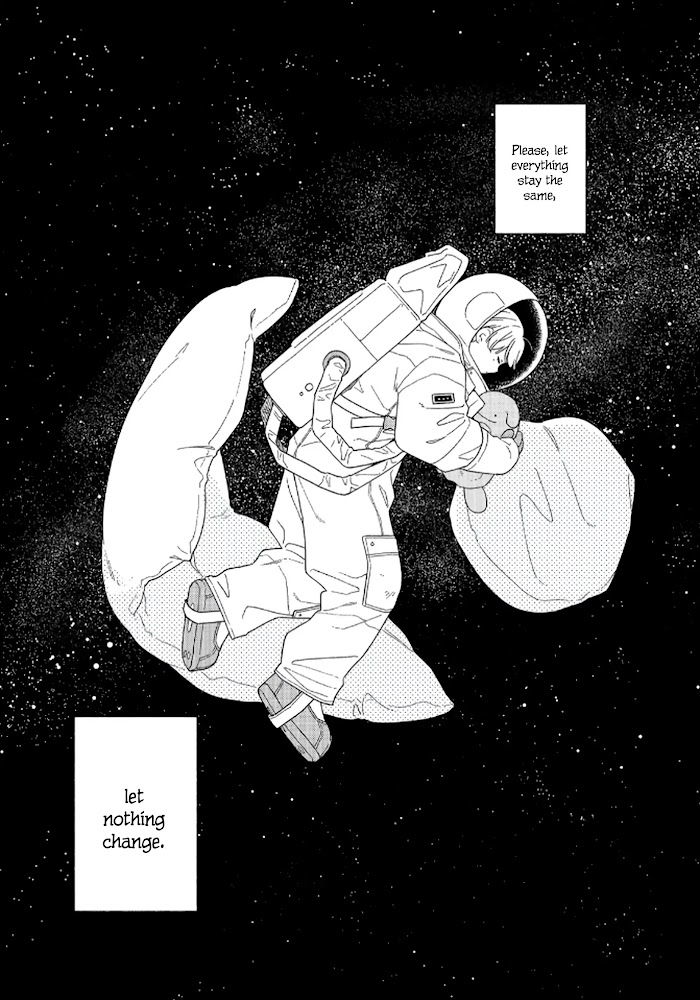 “You'll never like me.” Takamura, a high school student, returns to the town where he lived as a child and, by chance, finds himself in the same class as Rei, a boy he had a crush on in elementary school. Rei also remembers Takamura, and feeling something akin to fate, Takamura begins to harbor a faint crush on him once again. However, when he witnesses Rei entering a hotel with a boy after class, he is surprised and asks him about it. Rei tells him that it was just a friendship, but his next words are: “I have no idea what it's like to fall in love with someone...”