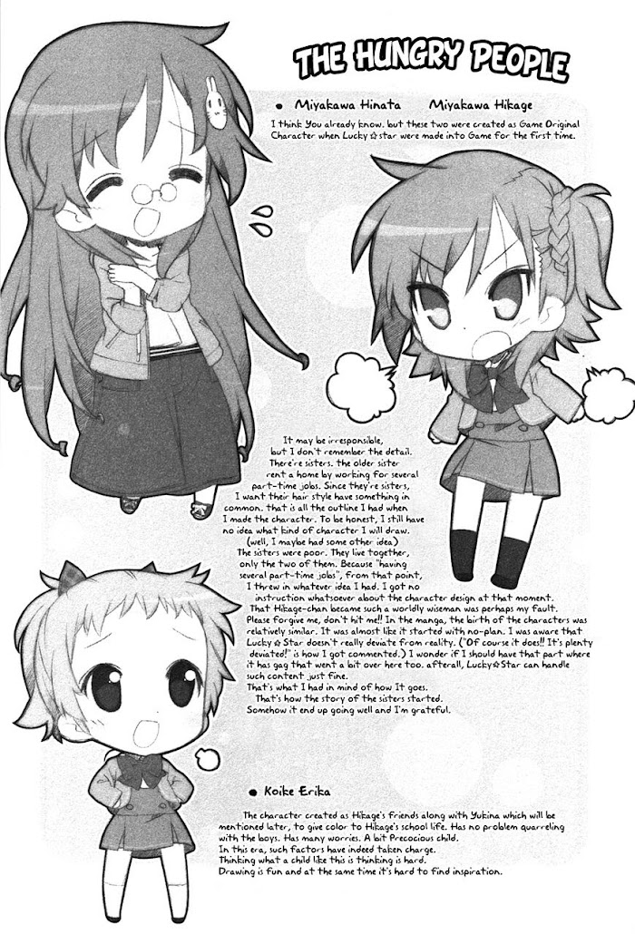 A side story of Lucky Star, involving the hungry little sister and her otaku big sis, and their life with no money because of big sis' tendency to buy doujinshi.