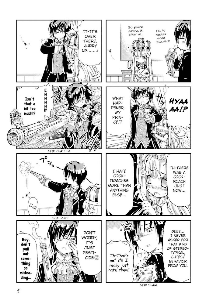 In a land far, far away exists a tiny kingdom named Momonofu. It is ruled by the Momonofu family-that is, the king, the queen, and the prince. Well, the prince is actually a girl, but that is just a trivial detail. The princess' hobbies are eating snacks, collecting stuffed animals and dreaming of world domination. Enter Miyamoto, the faithful butler of princess Apricot, who's actually a super sadist and possesses superhuman butler powers. Together with various other companions they set out to conquer the world-or at least to mess up princess Apricot's daily life! (Source: Batoto)