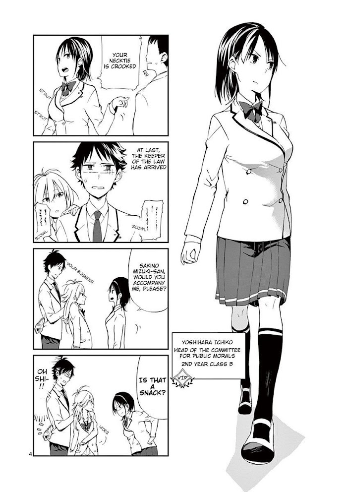 Monday Starts With The Second Period manga summary: A 4-koma comedy about the daily antics of the fairly normal Imura Sousuke, and the "delinquent" Sakino Mizuki.