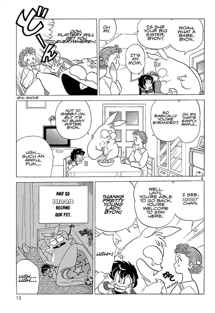 Description :This was Takahashi's first foray into manga for children. It follows MOON, a giant alien rabbit who is trying to get back to his planet. He lands in Japan and gets help from a young boy named Shota. The first few chapters revolve around Shota trying to overcome his fear of heights.