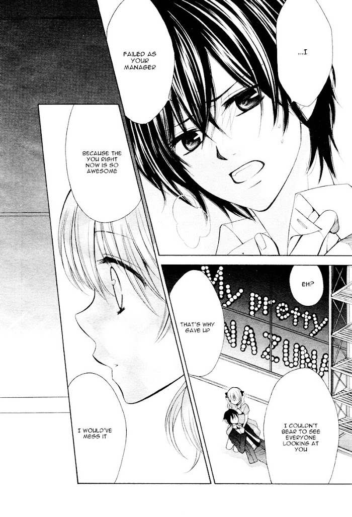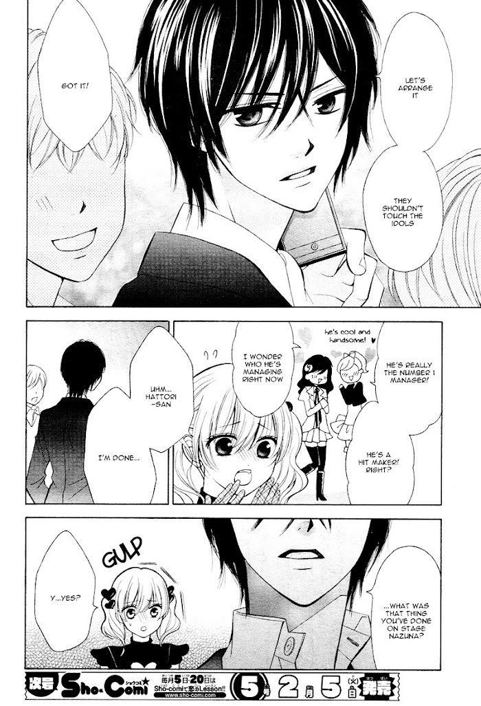 "Please be an idol only for me" says Hattori to Nazuna. A cute love story of idol and her manager. (Source: MU)