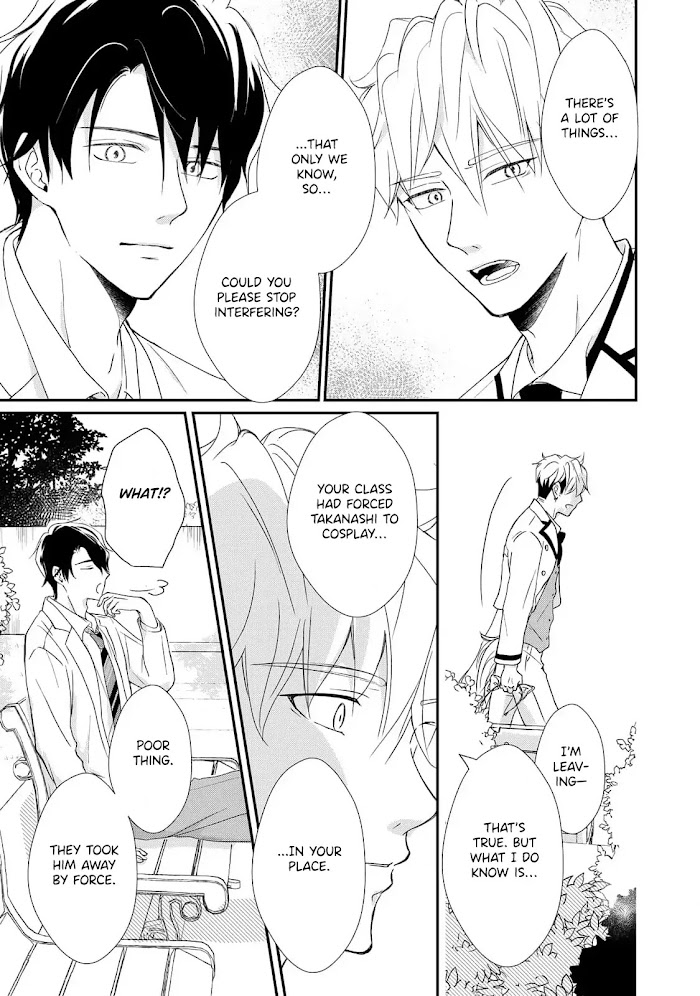 Takanashi Haru, a plain and unassuming boy with black hair and glasses, secretly has a crush on the popular teacher Nanjou. His crush is accidentally discovered by his classmate, Sanada Kazuki, a flashy and popular guy who is the complete opposite of Takanashi. Sanada takes an interest in Takanashi's unrequited love for Nanjou and tries to help Takanashi attract the teacher's attention. But as Takanashi starts spending more time with Sanada, he begins to experience Sanada's kindness... Maybe Sanada isn't just the flashy guy he appears to be...? What will become of this usual pairing...!?