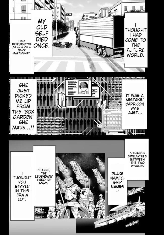 After regaining consciousness, your average high-schooler Asagaya Shin has become an AI for a space battleship. As if that wasn't enough, the ship has been surrounded by enemies, and he himself has a damaged engine, putting him in a dire situation. The warship commander had already died in combat, and taking the place of the temporary commander is a young girl of the imperial family, who had joined the ship out of courtesy. Makoto had tried convincing himself that this was a dream, but being persuaded by the girl, he stands as a battleship. After somehow crushing the enemy at point-blank range, the fleet's fight is over, and the battle for the fate of the empire has ended in a crushing defeat. Makato gathers up the survivors and plans to escape the battleground, but there's a large enemy fleet on the route to the empire. He makes a jump deep into the enemy territory on a slim chance, but - Set 10,000 years in the future, a young boy has been turned into an incredibly powerful cheat AI and leads a small fleet to become peerless. There's romantic comedy, imperial intrigue, ancient weapons, philosophy, and more!