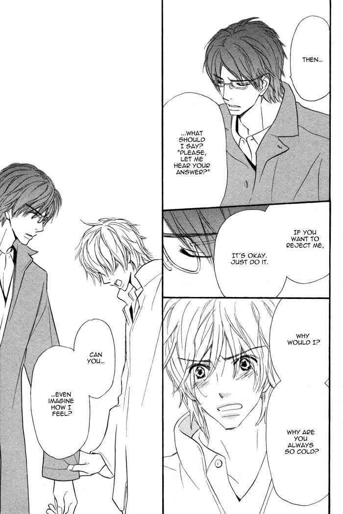 Yoshino can't help liking his co-worker Murai, even though he knows he's straight and will never return his feelings. Meanwhile, Hashimoto, the new guy in the department, is crazy about Yoshino, even though Yoshino never gives him anything but a hard time. Hashimoto will try everything he can think of to make Yoshino forget his unrequited love and fall for him instead. (Source: Dangerous Pleasure)