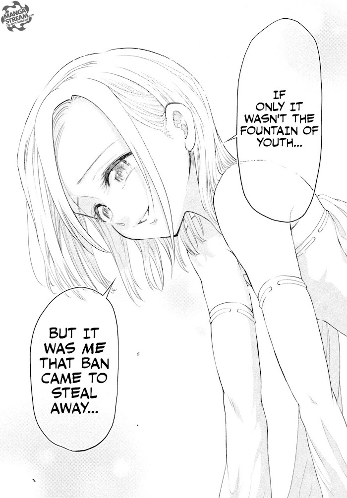 A spin-off of Nanatsu no Taizai showing how Ban and Elaine met in more detail. In the land north of Britannia, there is a forest where humans are not allowed to go, and it is known as the "Fairy King's Forest." The one known as the Fairy King, Harlequin, has not been seen for 700 years. His younger sister Elaine guards the Fountain of Youth from human greed by herself. After many partings and 700 years of isolation, her tears are about to dry up. Then, a young man appears seeking the Fountain of Youth. That young man's name is Ban. Over the course of seven days with Ban, Elaine's heart is healed. The distance between them closes, but... (Source: ANN)
