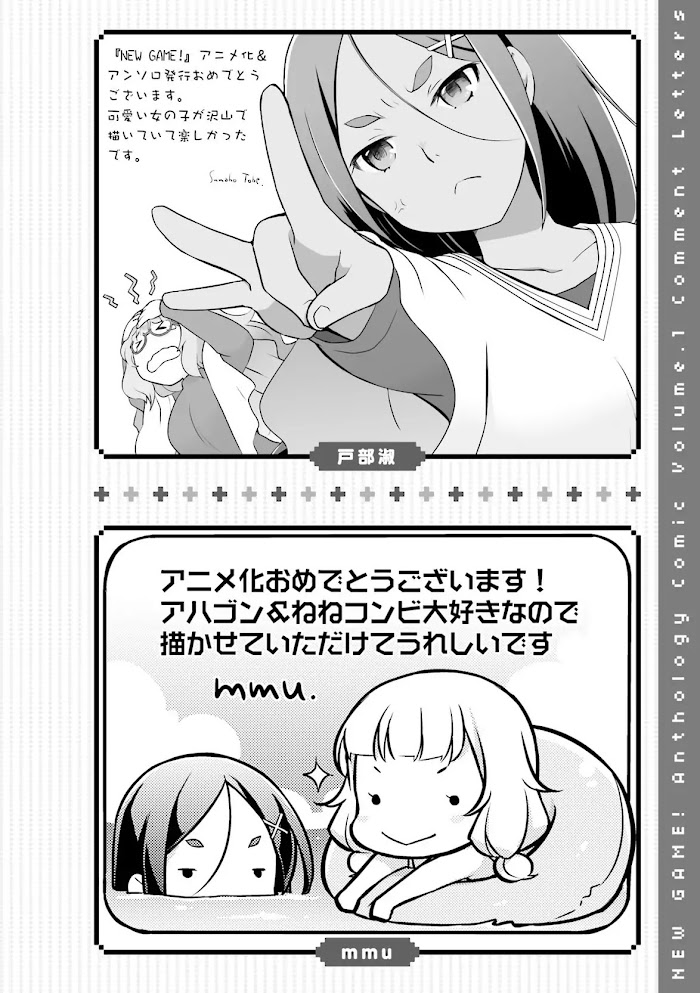 NEW GAME! Anthology Comic manga summary: NEW GAME! Anthology Comic summary is updating. Come visit VyvyManga.com sometime to read the latest chapter of NEW GAME! Anthology Comic. If you have any question about this manga, Please don't hesitate to contact us or translate team. Hope you enjoy it.