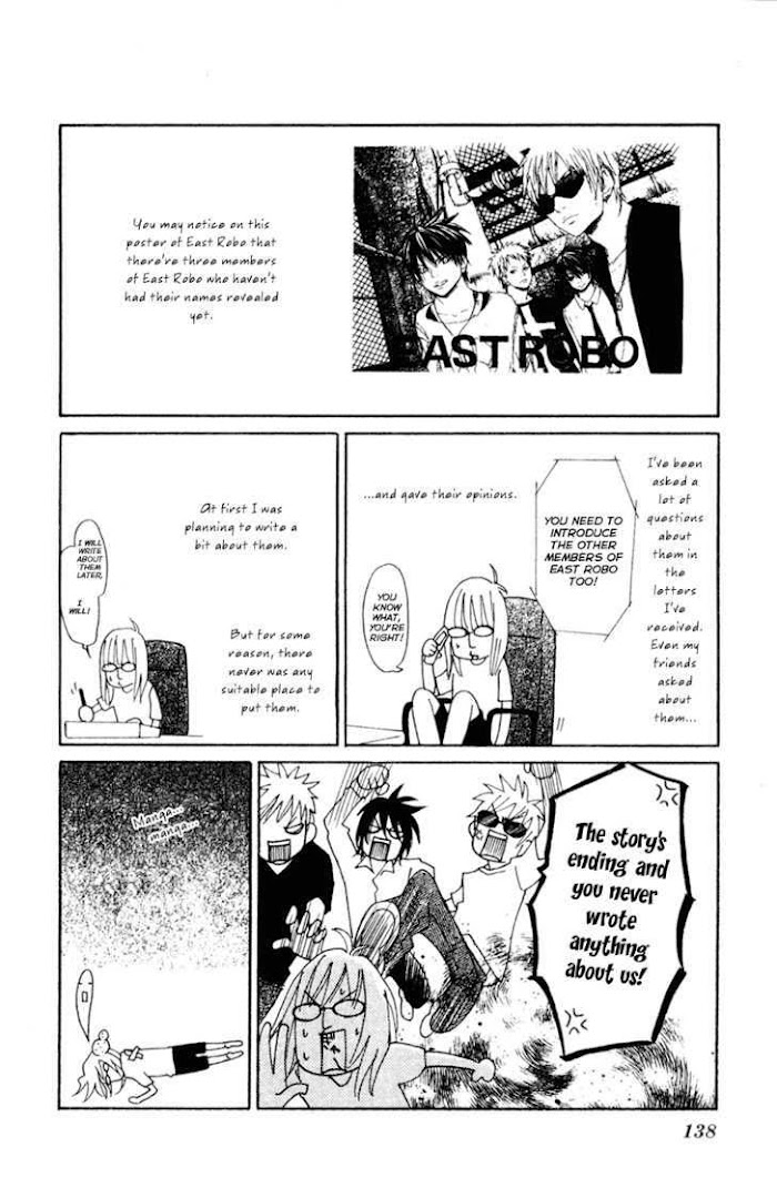 Fujisaki Maki once had a peaceful life, but one day, she decides to help Nobitani, who was being bullied, and now everyone's bullying her! Because Nobitani feels guilty, he gives Maki tickets to a famous local band called 'East Robo.' Maki decides to go and during the concert, the leader singer plays a ballad and is looking at Maki?! Included one-shot: Volume 1: Bagutte Change