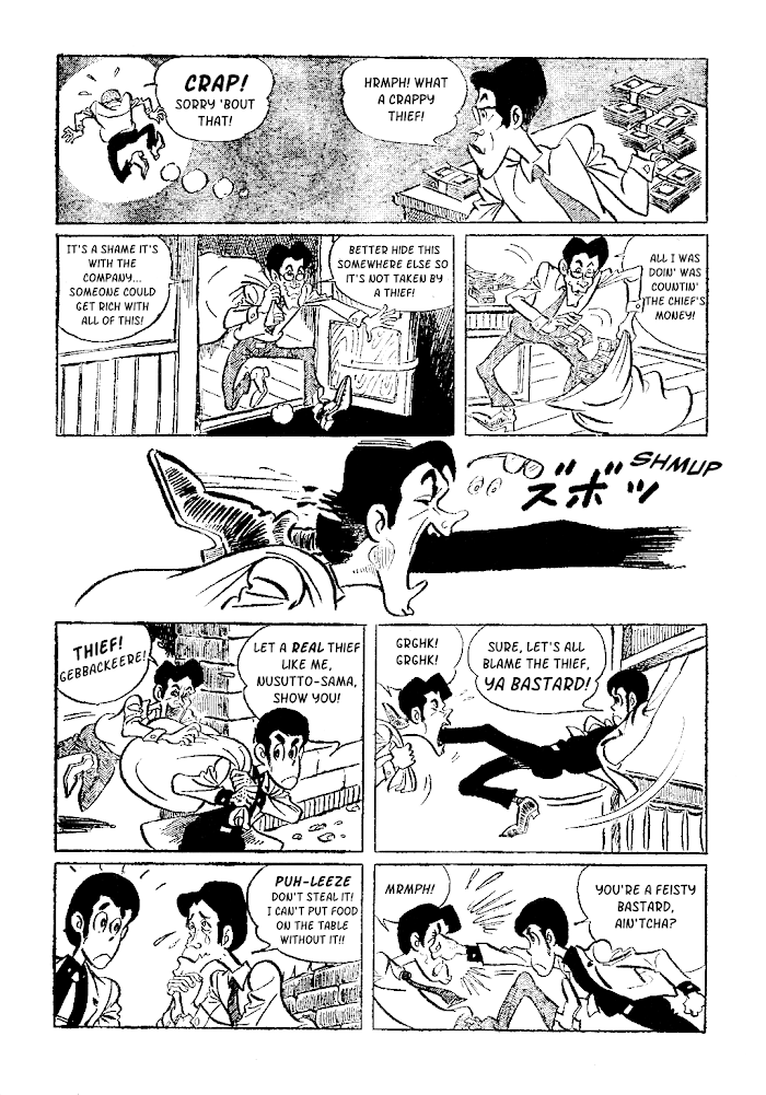 For Nusutto, every day is a new opportunity to be his name, a thief. With his partner Scotts and surrogate daughter Chiko, Nusutto gets into far-out gag-filled situations and barely tries to hide any resemblance to a more well-known thief from a rival publisher. Quite possibly the most obscure Jump series, it has been buried by Shueisha due to the remarkable (and unlicensed) resemblance to seinen superstar Lupin III, and has never received any volumes released in fear of legal issues.