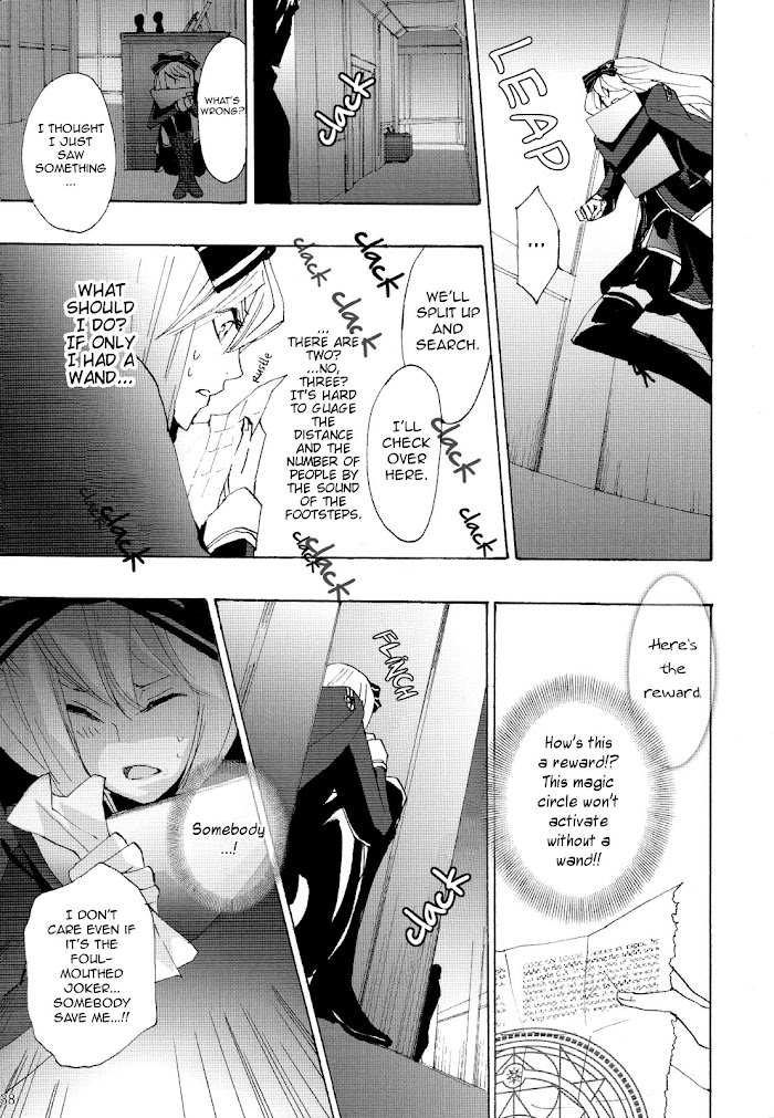 Omochabako no Kuni no Alice Special Deluxe Edition Booklet manga summary: This volume contains two stories that follow the Omochabako no Kuni no Alice fan disk which is part of the Heart no Kuni no Alice series (aka Alice in the Country of Hearts). Alice and the role holders have been placed into a magical parody setting. Some are students and some are teachers at the prestigious magic school, Symphonia.Chp 1 - Elliot StorySummary: N/AChp 2 - Joker StorySummary: On her way to become a witch, Alice must study plenty of difficult texts and exercise many different abilities. One day while she is struggling to comprehend the art of summoning, Black Joker comes along with his own special brand of advice.> Part of the Heart no Kuni no Alice / Clover no Kuni no Alice series( http://www.batoto.net/search?name=Alice&name_cond=c&artist_name=QuinRose&artist_name_cond=is )