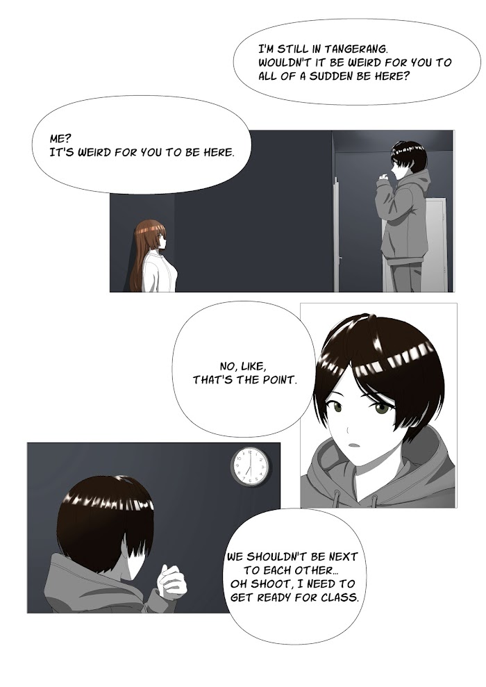 When Simon woke up, he heard the sound of someone's snoring. He checked his surroundings, thinking someone had infiltrated his room. He noticed that it was his childhood friend, Emily. Neither of them understood how the other got into their room. What they knew was that they were stuck with each other, unable to go far from one another. Their previously normal life was soon distorted, their very lives linked together.One Roof manhwa