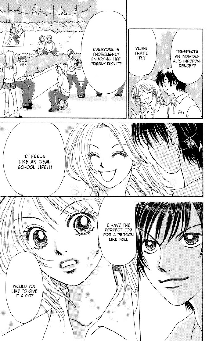 This series is about a girl named Otome who's searching for love now that she has entered high school. But of course, finding love isn't going to be easy, especially if you have three delinquent boys who are your childhood friends. Otome explains to the boys that since they are in high school now, she wants to find love and fall deeply in love, but Tokio (one of her childhood friends) insist that she be part of his plan. He dreams of taking over the school and becoming a grand gang leader; he'll even let her join as the sub-leader. What is she going to do? As she sneaks away from the boys, she catches a couple of girls watching the most popular boy, Touyou, being confessed to!? Is this love at first sight? She decides to spy/stalk him...what will she find out? (Source: whyanime) Included one-shots: Tonari no Danshi (The Boy Next Door) Chitsujo vs. Jiyuu: Saint Jiyuu Gakuin (System vs. Freedom: St. Liberty Academy)