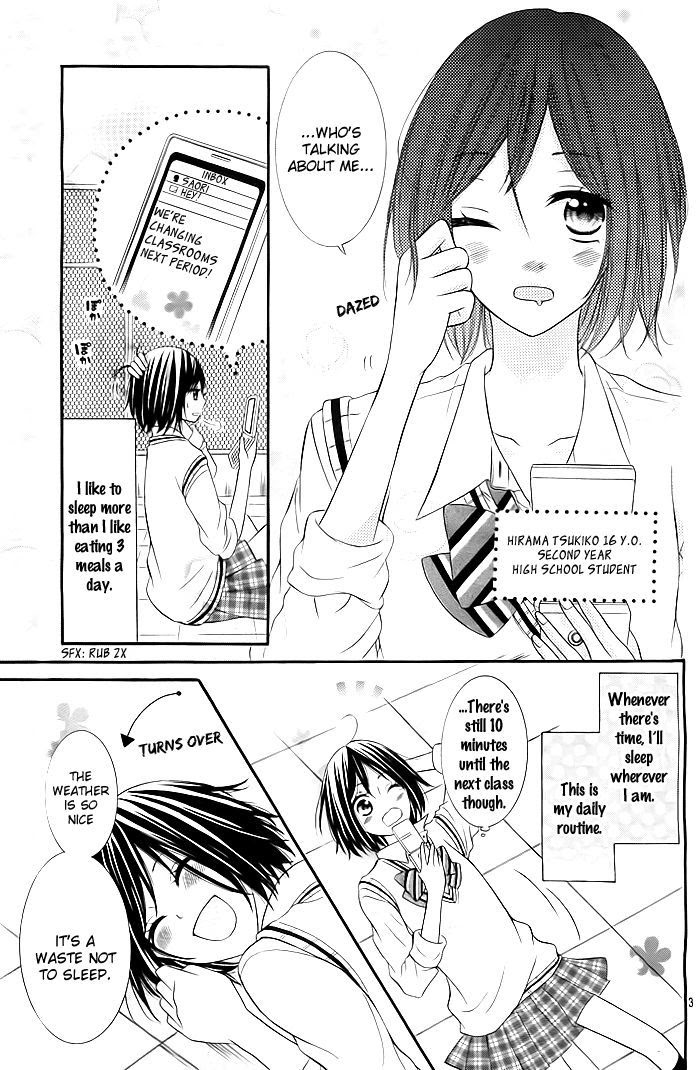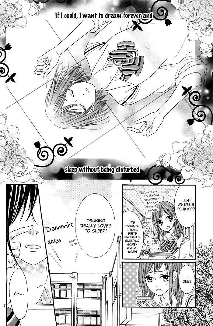 Ouji-sama ni Nemuri Hime no Kisu wo manga summary: Tsukiko loves to sleep and spends every opportunity to do so. As a usual activity, she has slept at the school roof, however she finds a guy sleeping next to her! This same guy, also have asked her to sleep next to him in order to help him with his sleeping problems. This guy (dun dun dun) happens to also be that very popular guy that is the prince of the school. As they spend more time together, it's harder and harder for Tsukiko to get the sleep that she usually gets...