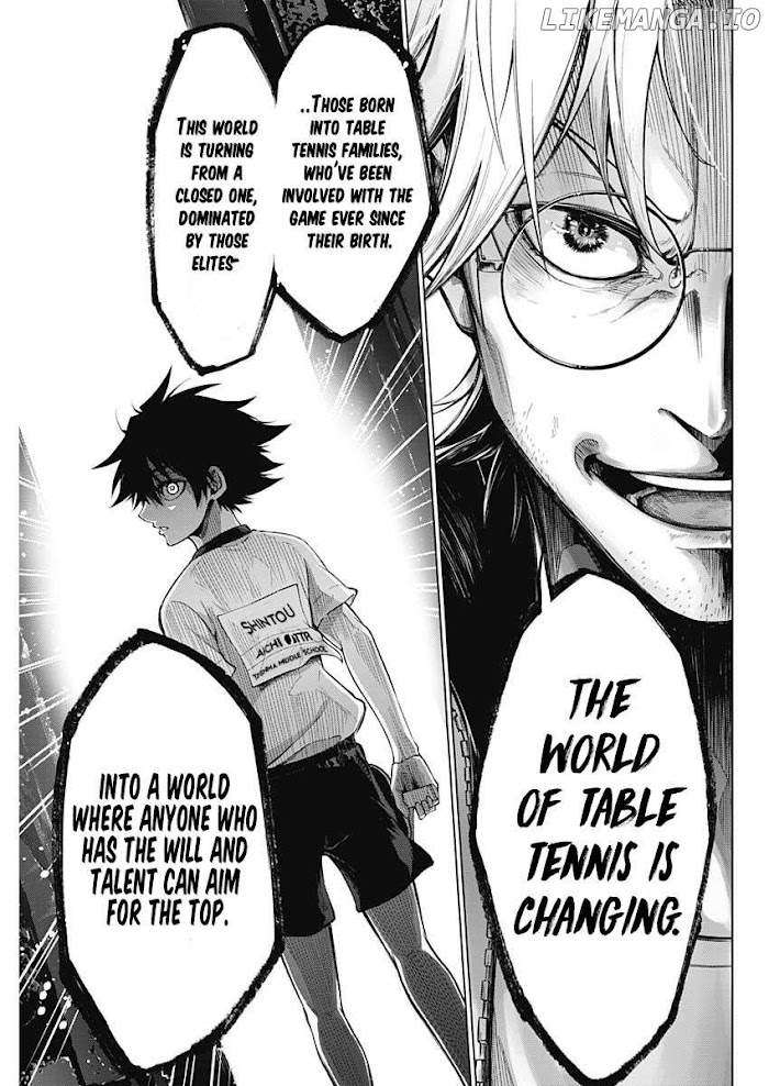 In today's world, it is said that you have to start by the age of six to become a top table tennis player. Takeshima, a former member of the Japan national team, is looking for someone who could overcome this common sense. He meets Fukado En, a boy who took up table tennis in search of human connection, and sees the potential in his straightforward, unadulterated passion. A former national team member and a lonely boy weave a dramatic table tennis story that drives a stake through the common sense of the sport.