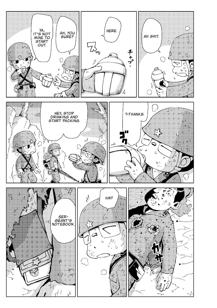 Peleliu: Guernica of Paradise manga summary: Peleliu - Rakuen no Guernica follows the daily lives of Japanese soldiers taking part in the Battle of Peleliu during World War II: a high-casualty, months-long campaign. The main character, Tamaru, dreams of returning home to become a mangaka, and sees their island outpost as a wild paradise that can one day be used as a setting for one of his stories. Most of his comrades, however, are prepared for the more realistic scenario -- that they will not be leaving Peleliu alive.
