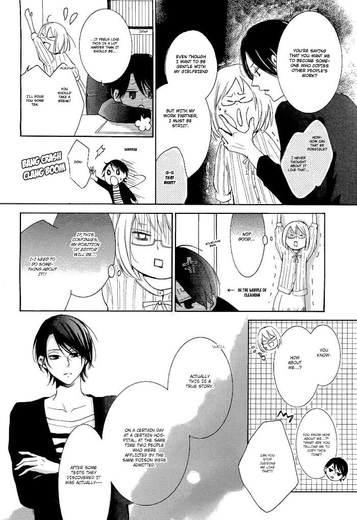 Pen Saki ni Syrup manga summary: from Sound of Jewels: Our hero is a high school boy and a mangaka. A handsome mangaka! A hard worker mangaka! And he attends a famous school for mangaka! He also always finishes his work before the dead-line! Our heroine is a clumsy editor. She’s always doing her best but she’s still an idiot. She never finishes a work before the dead-line and made a mistake in the number of pages. So what will happen when the two of them will met…?