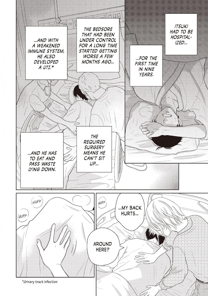 Kawana Tsugumi works for an interior design company. She goes to a drinking party at a client's architectural office and happens to meet her first love. He's more handsome than ever and it isn't until he's leaving that she realizes something has changed: Ayukawa is in a wheelchair. (Source: MU)