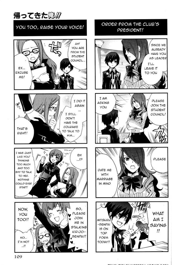 Persona 3 4koma Gag Battle Broken Hen manga summary: Persona 3 4koma Gag Battle Broken Hen summary is updating. Come visit VyvyManga.com sometime to read the latest chapter of Persona 3 4koma Gag Battle Broken Hen. If you have any question about this manga, Please don't hesitate to contact us or translate team. Hope you enjoy it.